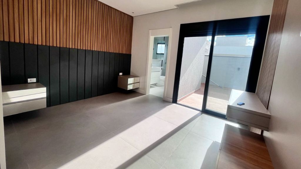 – 4 suítes sendo 1 suíte principal com planejados, closet, ar condicionado e detalhes de marcenaria,