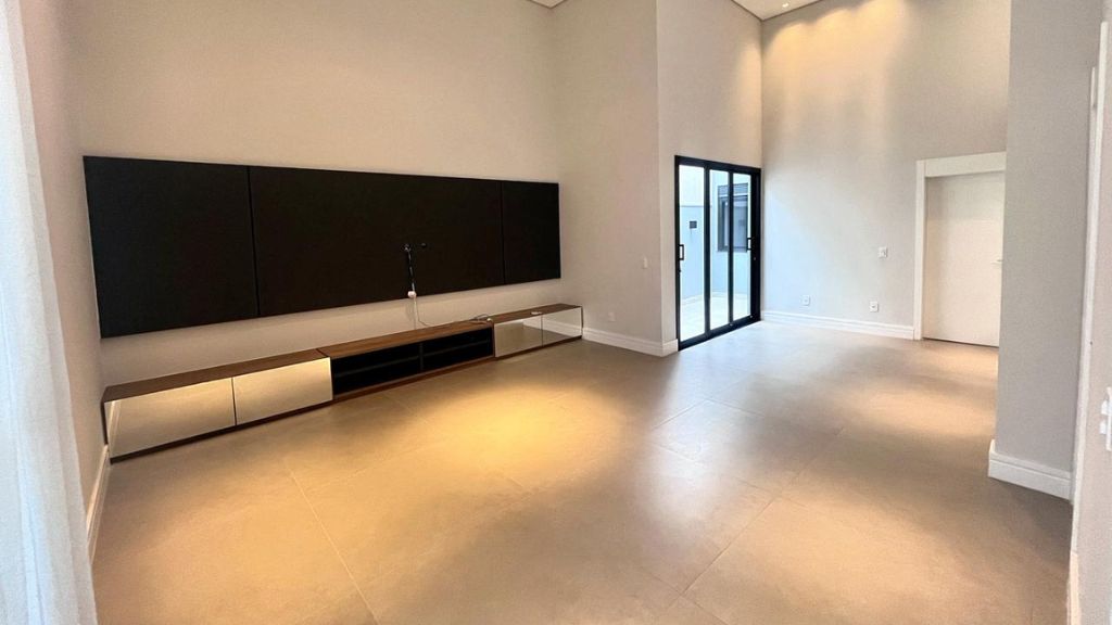 – Salas de TV com painel e pé direito alto,