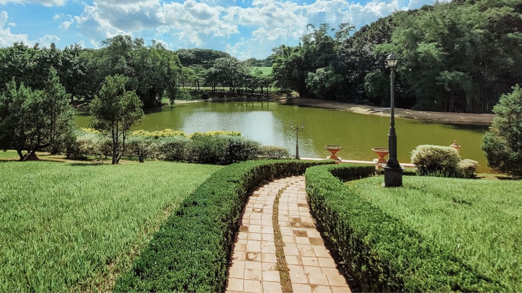 ✔️ O Porteira de Ferro é um lugar autêntico, que já nasceu com uma beleza tão extraordinária que dispensa grandes transformações. Com quase 20 mil metros quadrados, sua área verde exibe uma vasta coleção de espécies nativas, harmoniosamente complementadas por um paisagismo único e marcante, idealizado por Alexandre Furcolin. Em destaque, um majestoso espelho d’água de quase 14 mil metros quadrados.